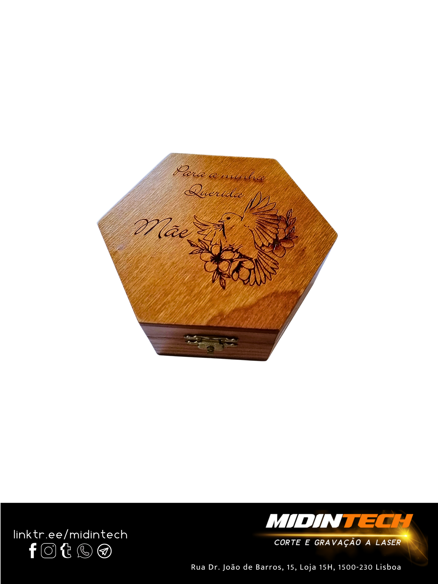 Caixa Sextavada personalizada a laser dedicada à MÃE