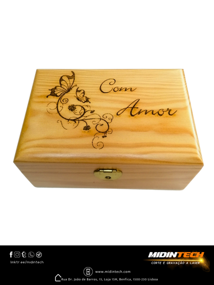 Caixa Baú, personalizada a laser, dedicada a AMOR.