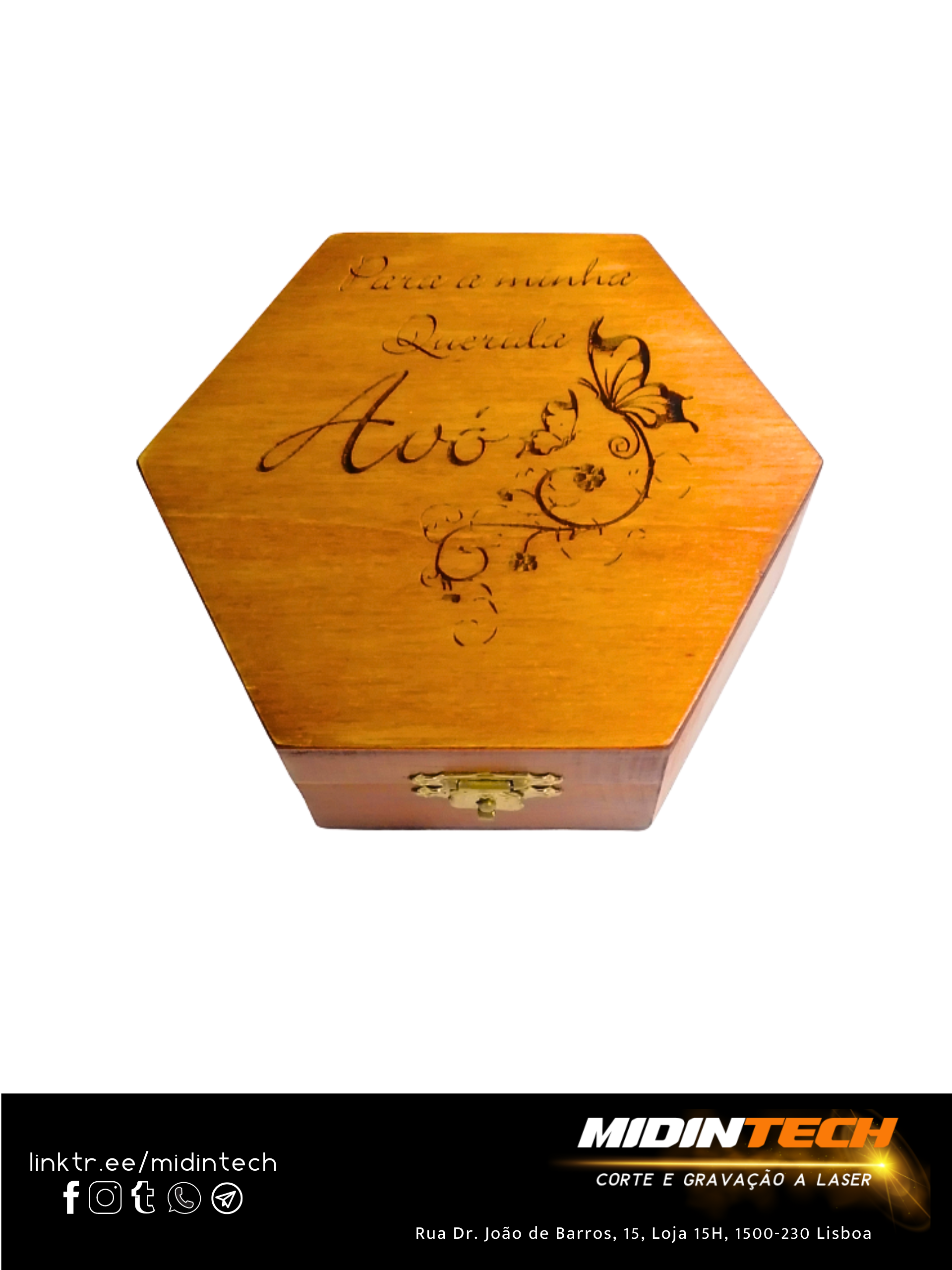 Caixa no formato Sextavada personalizada a laser dedicada à AVÓ