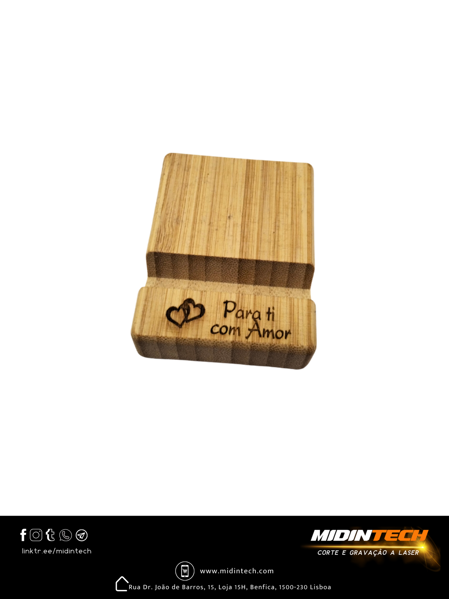 Suporte para Telemóvel ou Tablet. Personalizado a laser. Dedicado a AMOR.