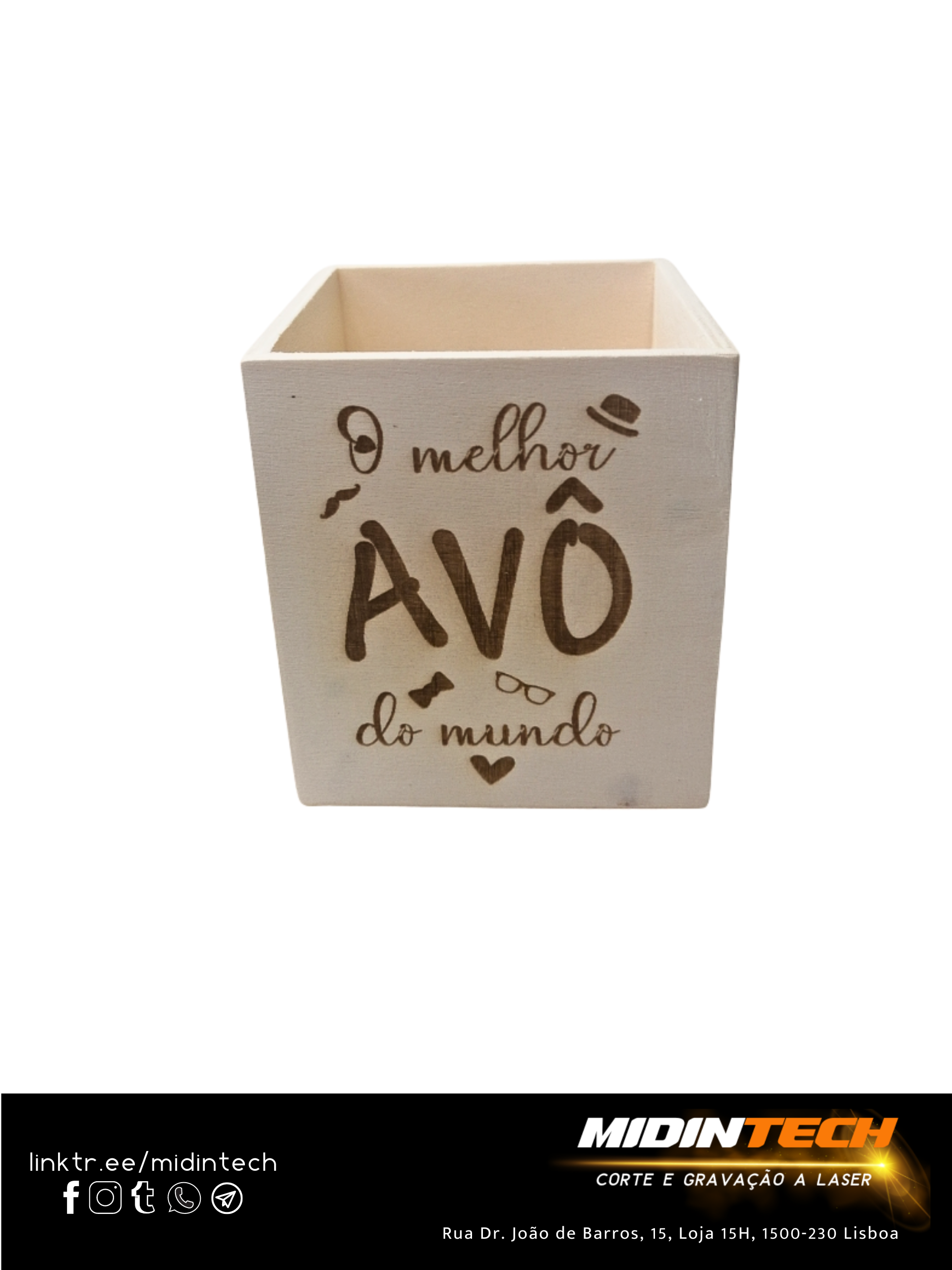Suporte de Canetas em Madeira para secretária. Personalizado a laser, dedicado ao AVÔ