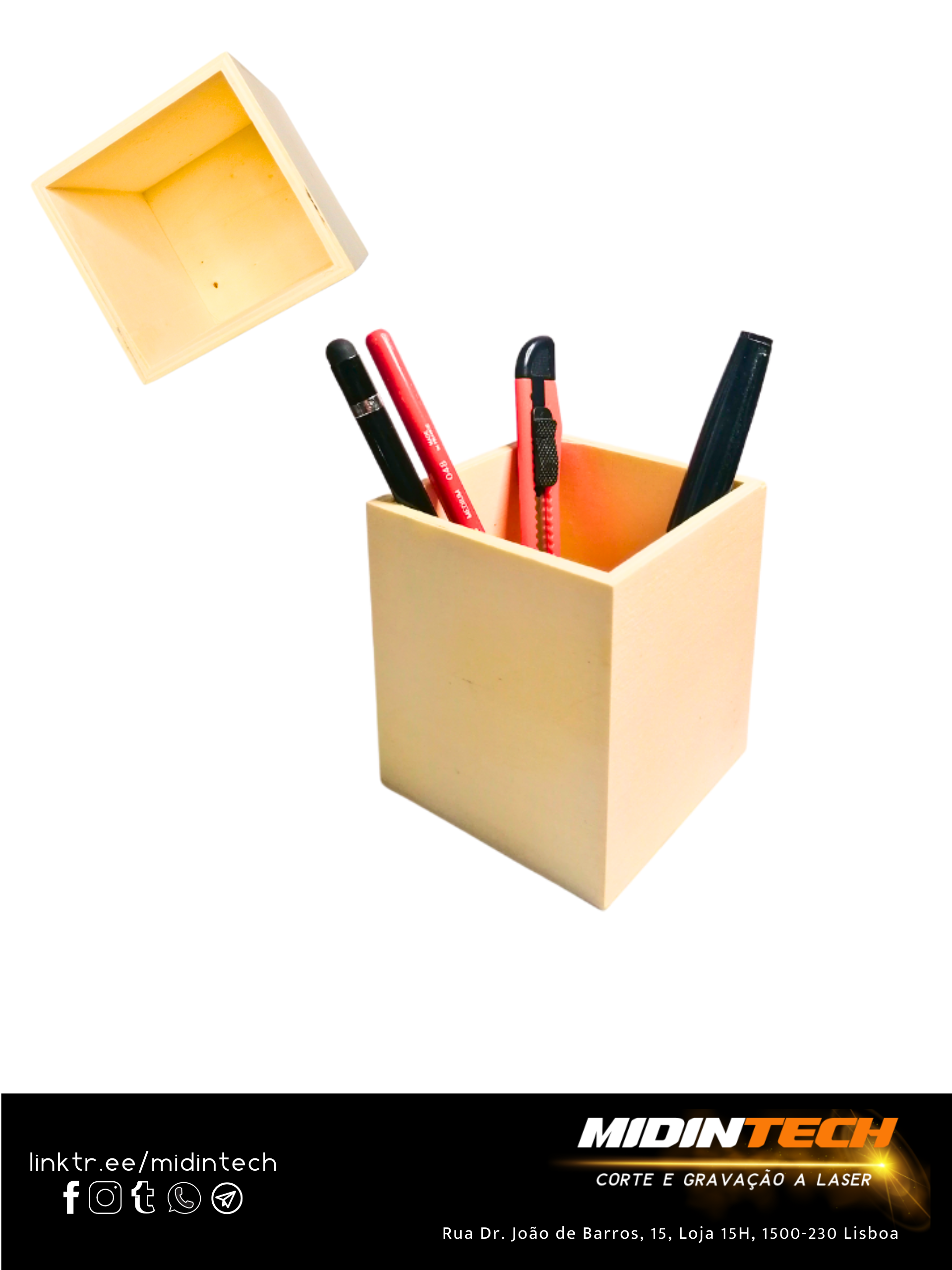 Suporte de Canetas em Madeira para secretária. Personalizado a laser.