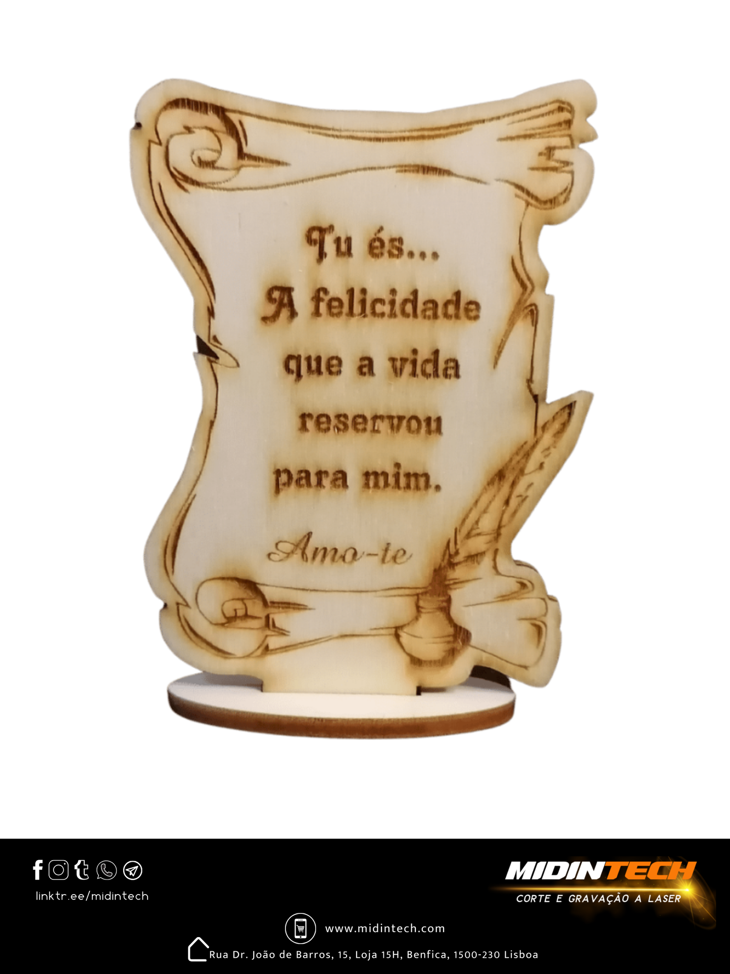 Placa em formato rolo c/tinteiro e pena alusiva a Amor.