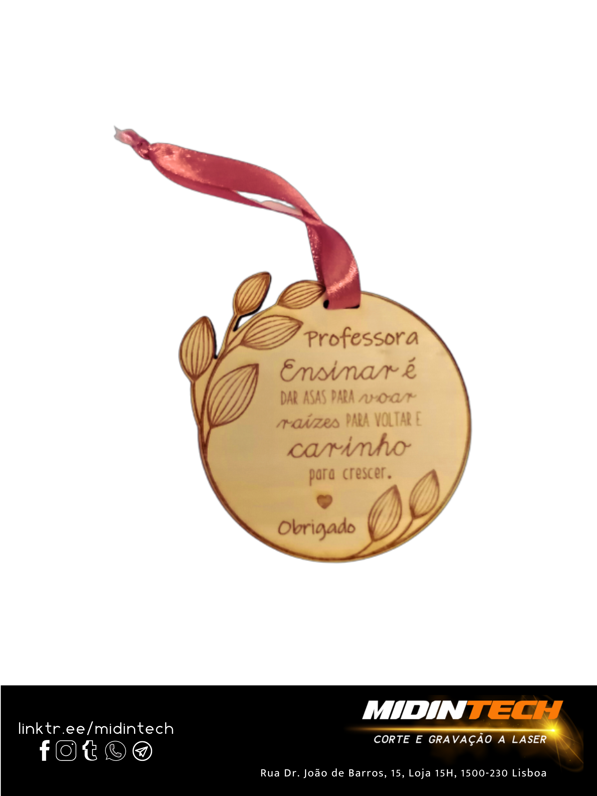 Placa alusiva com fita. Personalizada a laser, dedicada à PROFESSORA